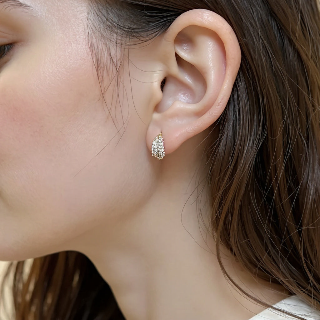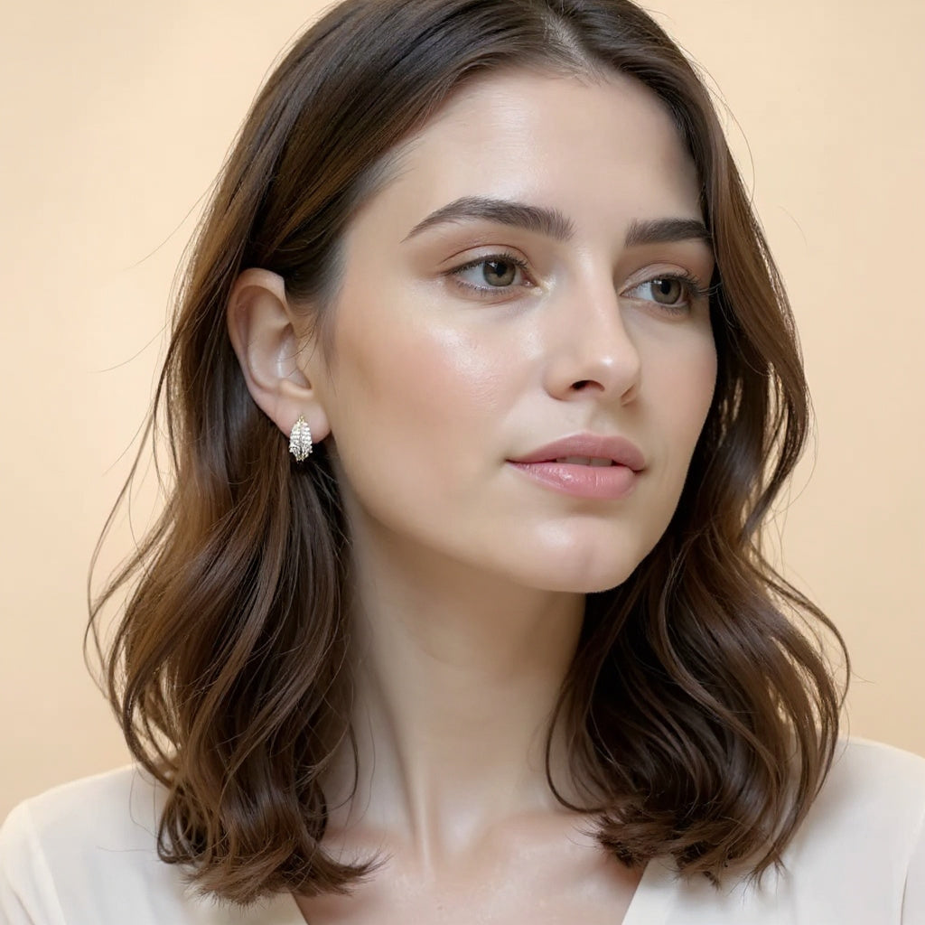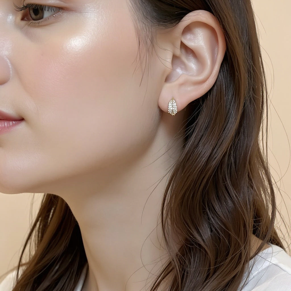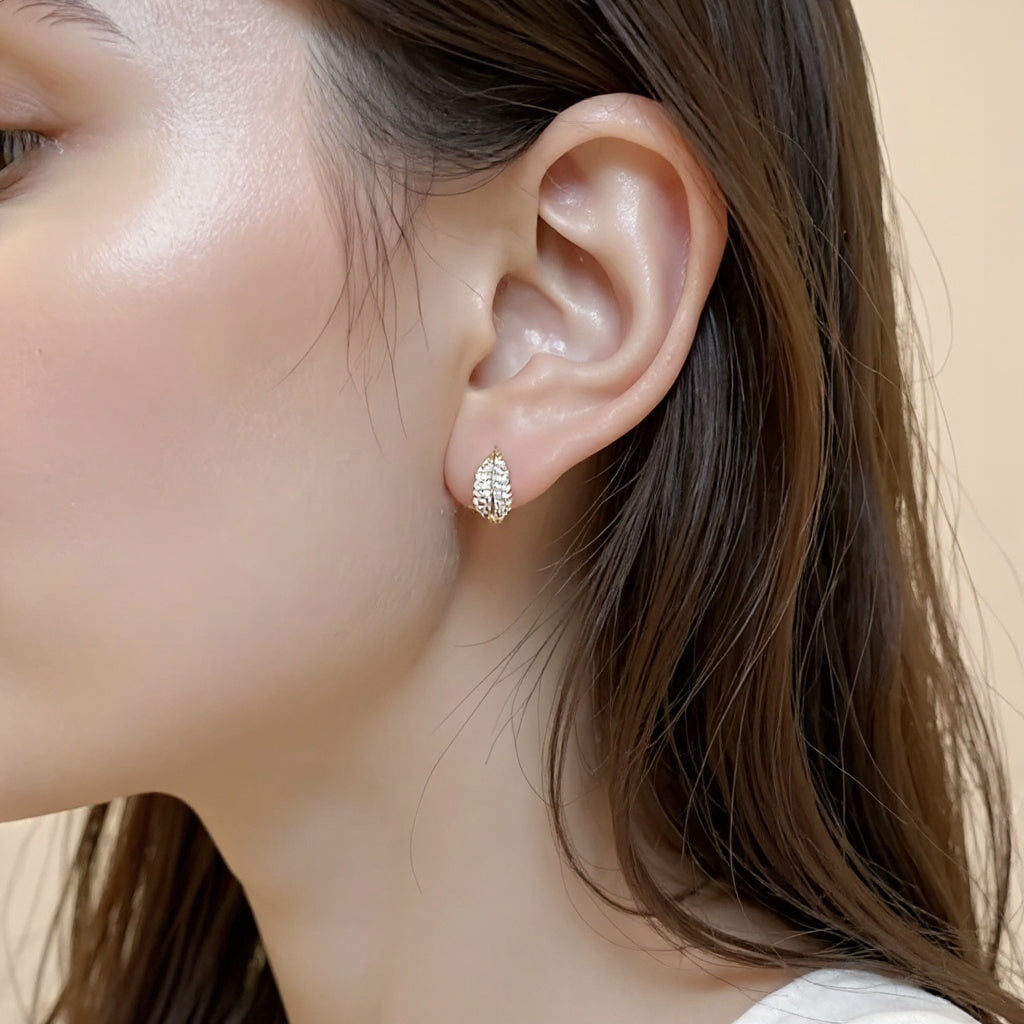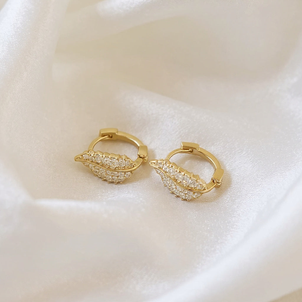 Ontdek de kracht van verfijnde eenvoud. Deze sierlijke, bladvormige oorringen in een warme goudtint combineren minimalistisch design met de delicate schittering van zirkoonsteentjes. Het lichtgewicht ontwerp biedt all-day comfort, terwijl de elegante uitstraling elke outfit verfijnt.