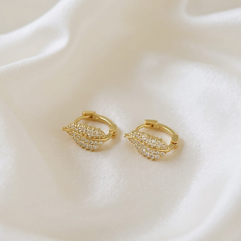 Goud-Geplateerde Bladvormige Oorringen met Zirkoon