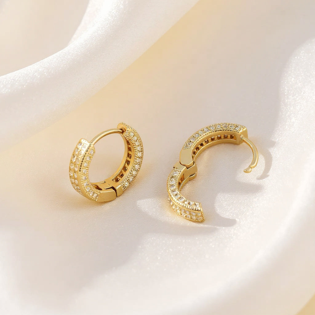 Durf anders te zijn! Deze opvallende oorringen met een krachtig geometrisch design en schitterende zirkoonsteentjes zijn gemaakt om gezien te worden. Of je nu houdt van Hip of gewoon van unieke sieraden, deze oorringen geven je outfit direct een stoere en luxueuze edge.