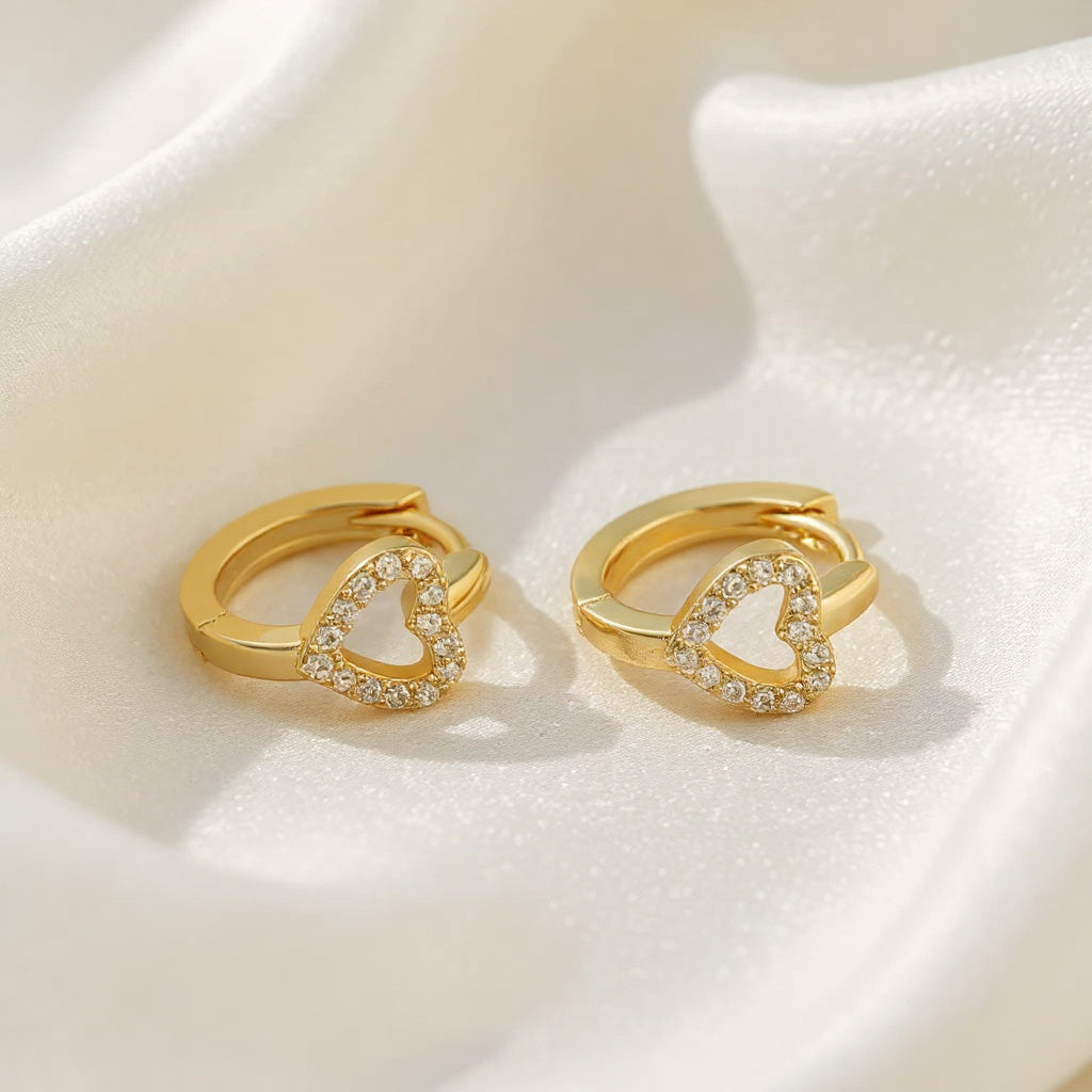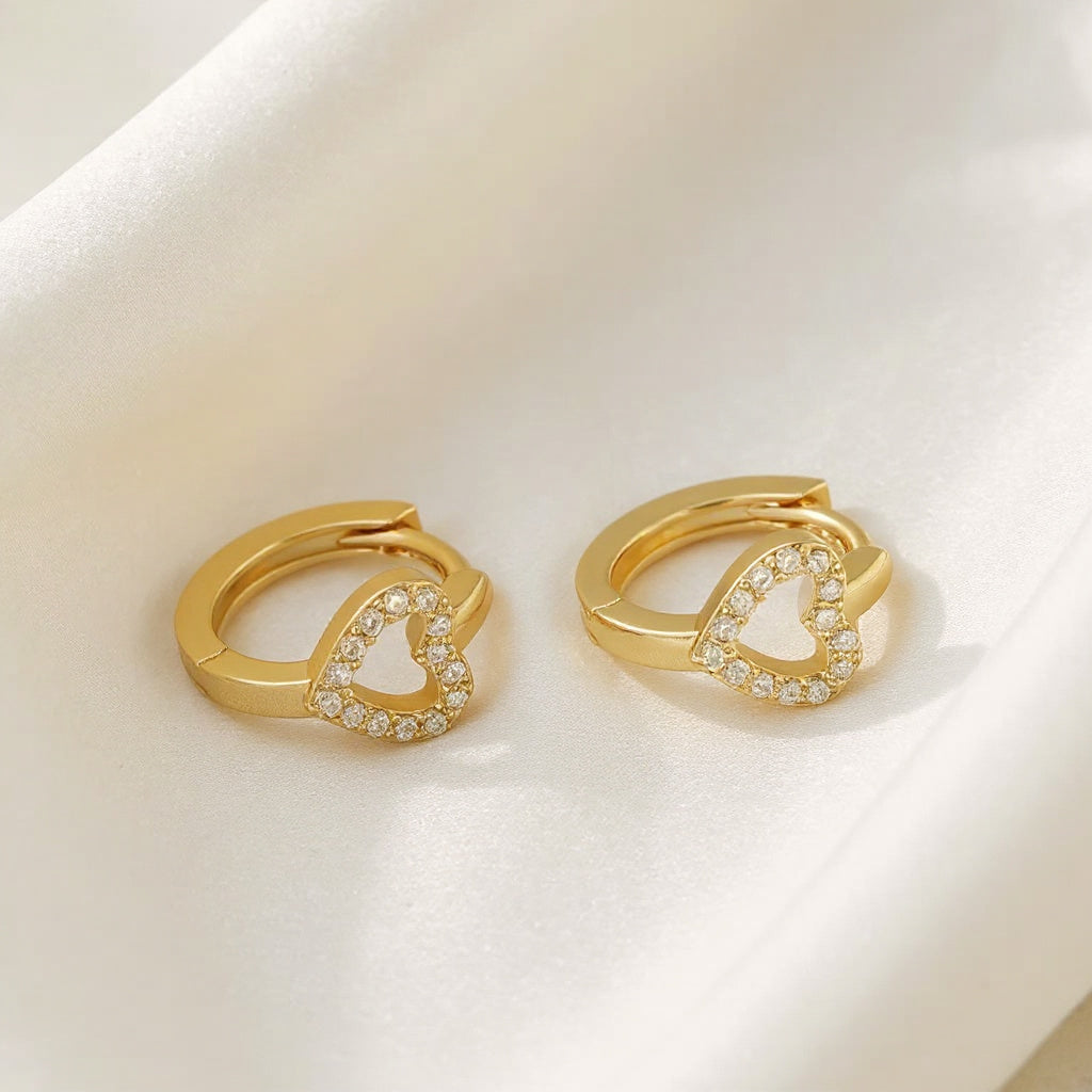 Ontdek de perfecte combinatie van speelse liefde en verfijnde elegantie! Deze betoverende hoepeloorbellen met een uitgesneden hartdesign en schitterende zirkoonsteentjes vangen moeiteloos het licht én alle aandacht. Of je nu een casual look afmaakt of een speciaal moment viert, deze oorbellen stralen pure vreugde uit.